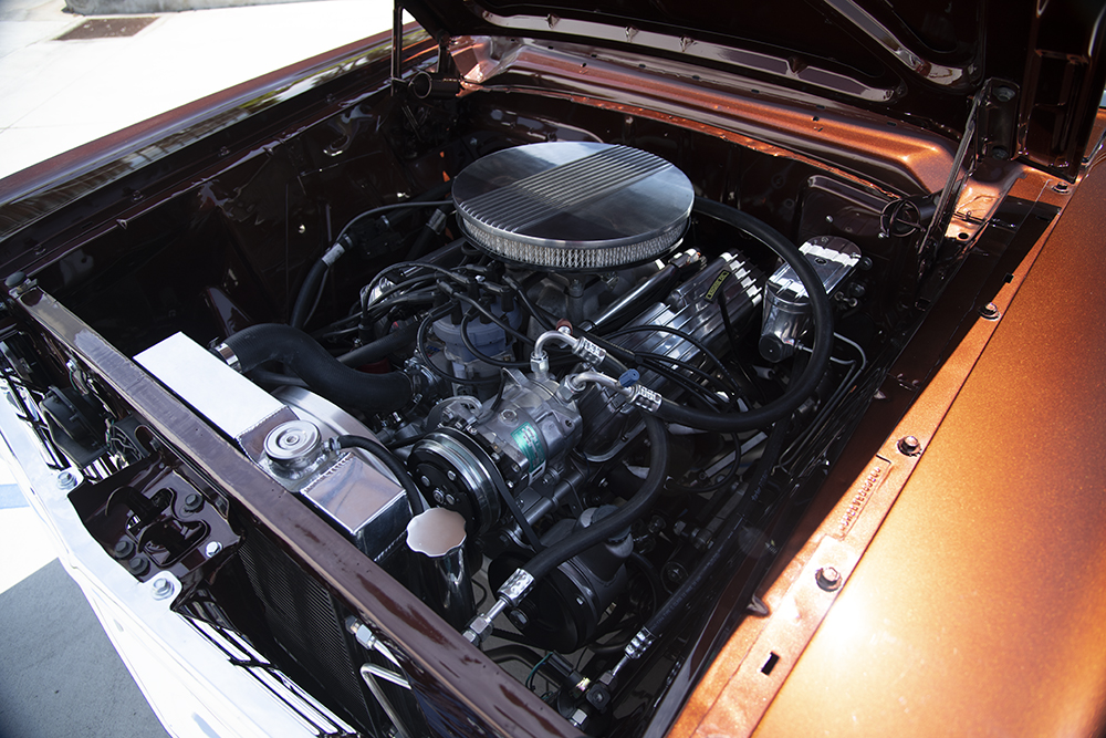 Though the bulletproof and original straight-six engine in the wagon probably still ran strong, who wants original power in a Falcon two-door wagon? Not Mr. Ron Pinegar, which pleases most hot rod enthusiasts. Ron swapped in a 347-cubic inch V8 Ford stroker mill, built from a Ford 302 small block V8. The new engine is backed by a Ford AOD automatic transmission. Ron's root beer ride now rolls strong on some American Racing Salt Flats rolling stock that are 205 65/R16-inchers in the front and staggered with 225 65/R17's in the back, all wrapped in BFGoodrich Radial Advantage rubber.