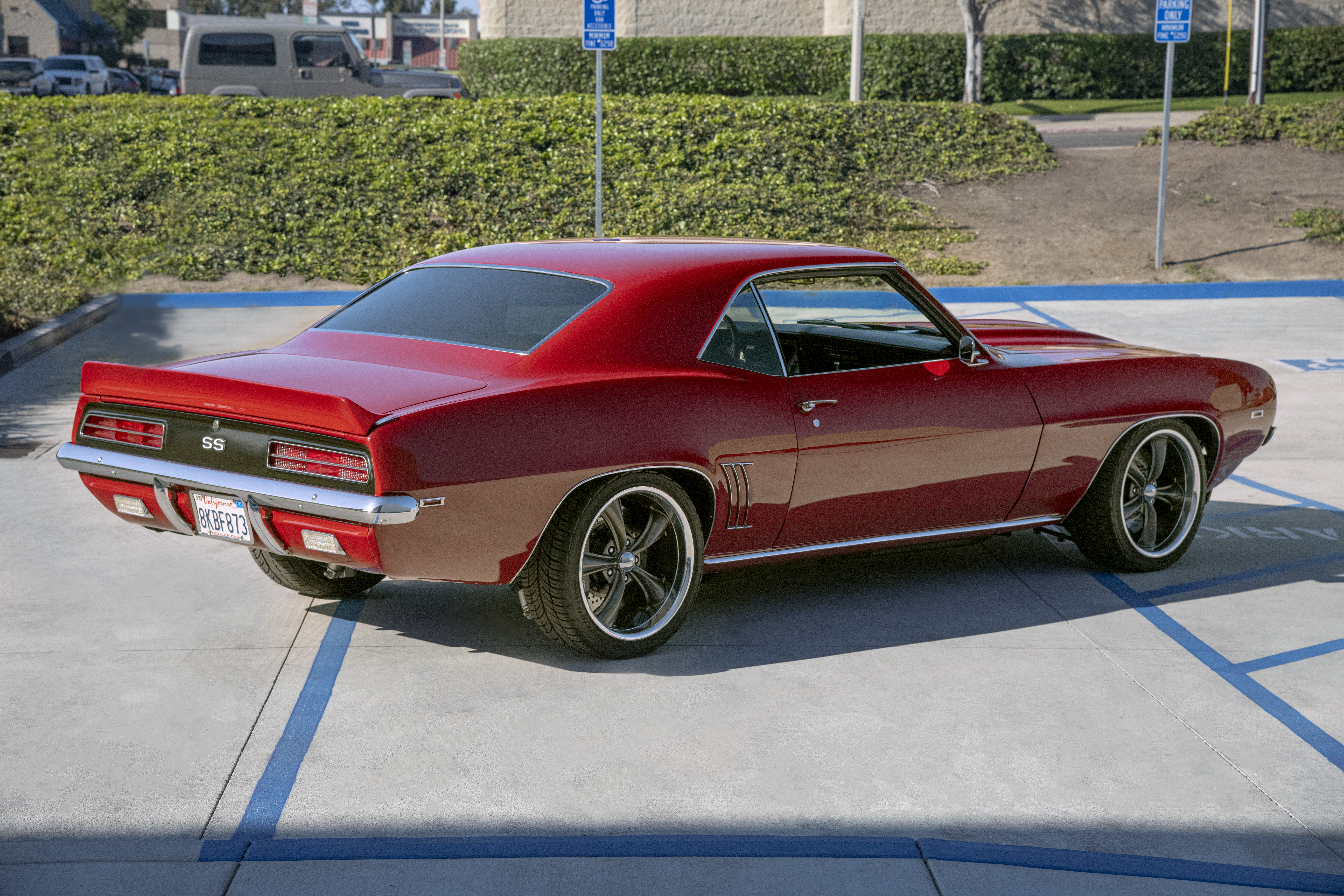 The chosen color was a rich 1969 Camaro hue of Garnet Red (GM Code 52) with the tail panel sprayed in the SS satin black hue that designates it's a SS396.