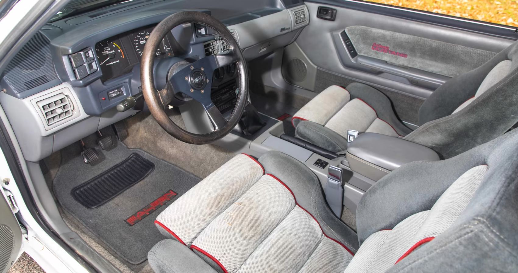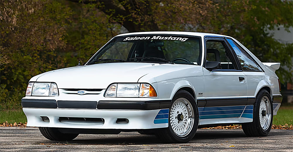 Above and just below: Time to tear up the tarmac in a 1988 Saleen Mustang.
