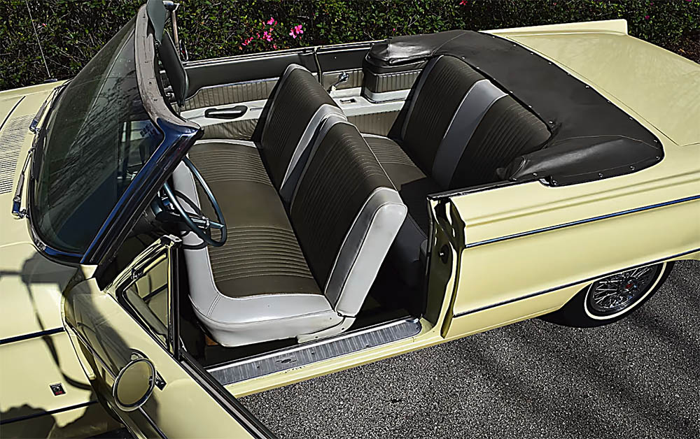 Above: Here's a nice first generation, 1963 Comet convertible that is equipped with a 260 CI V8, automatic transmission, power steering, power top, and AM radio. The lead photo is of a third generation, 1966 Mercury Comet convertible that sports a 289 CI V8, a C6 three-speed automatic trans, power steering, power brakes, a dual exhaust, has black bench front and rear seat interior, and is shod with Anthracite hued Boss five-spoke wheels. Delightful! Photos courtesy of Mecum Auctions, Inc.