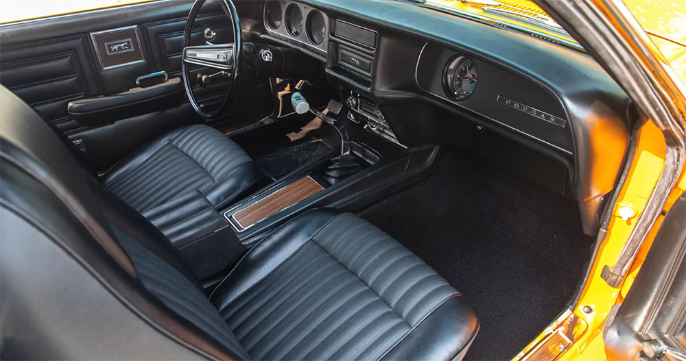 Above: The 1970 Cougar Eliminator photographed here is equipped with a matching numbers Boss 302 small block V8 mill that was conservatively rated at 290-horsepower and a four-speed manual transmission.