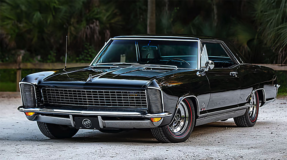 Above: Sumptuous and classy are two words to describe the 1965 Buick Riviera's navy blue upholstery. The 1965 Riviera is jet black over navy blue - stunning.