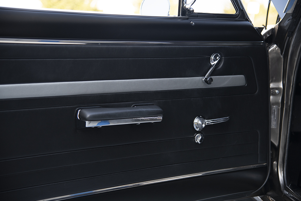 All in, the body prep and paint took almost one year. Old Anvil Speed Shop performed the body paint prep. Cambra Speed Shop, also in Orange, CA, applied the PPG gray paint scheme. The artful Ron Mangus Nova SS interior upholstery trim work took another six months.